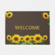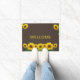 Belles tournesols sur tapis brun de porte d'accueil. Le texte de bienvenue peut être personnalisé.