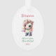 C'est un joli ornement de Noël que les parents ou grands-parents peuvent donner à un enfant. L'avant de l'ornement a l'image d'une adorable licorne de bébé enveloppée d'un chapelet de lumières pastel colorées de vacances. Le texte vert menthe et rose dit "MERRY CHRISTMAS". Le dos de l'ornement a votre texte personnalisé qui est séparé par une autre image de licorne. Modifiez facilement le texte à tout ce que vous voulez!
