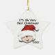 Vous pouvez facilement changer l'année sur ce personnalisable Bébé Blanc 1er Noël ornement de keesake avant de commander. Un bébé est en casquette rouge et le texte "C'est mon tout premier Noël !" est écrit.
