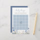 Célébrez l'arrivée prochaine de votre bébé avec l'adorable Blue Baby In Bloom Fleur sauvage Baby Bingo Jeu qui fera grincer les invités d'oreille à oreille. Ce jeu fantasque de bingo pour bébé est un complément incontournable à n'importe quel baby shower! Observez les invités impatients d'attendre chaque cadeau qui s'ouvre, en espérant être le premier à compléter une ligne et hurler BINGO. Si vous êtes à la recherche d'un jeu de baby shower qui est engageant, provoque des rires, et concurrence amicale, le Blue Baby In Bloom Fleur sauvage Baby Bingo Game est sûr d'être un succès!