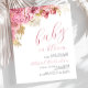 Cette invitation au baby shower sucré présente un bouquet luxuriant de fleurs et de feuillage rose et or. Ci-dessous, les mots "bébé en fleur" apparaissent dans un élégant script d'écriture rose. Personnalisez le texte avec le nom de la maman-to-be en écriture rose et les détails en caractère sans serif gris fusain sur un arrière - plan blanc.
