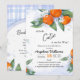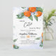 Invitations de douche pour bébés décorées avec l'illustration d'une délicieuse branche de mandarine avec des fleurs dans un style d'aquarelle.