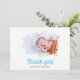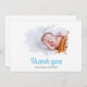 Fêtez l'arrivée de votre bébé avec ce carte de remerciements de baby shower moderne et élégant avec un bel effet photo d'aquarelle brossée dans les tons bleu et blanc apaisant. La conception vous permet d'ajouter votre propre photo chère, capturant un moment de mémoire heureux, tandis que le "Merci" élégant est écrit dans un élégant script bleu. Avec des options personnalisables pour le message, les noms et les détails de naissance, cette carte offre une façon sincère et visuellement étonnante de l'express gratitude aux amis et à la famille qui ont partagé dans votre joie.