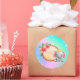 bébé éléphant assis à côté d'une rondelle avec des fleurs