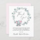 Jolie carte de remerciements de douche bébé fille avec "Merci" dans un script élégant avec un battement de coeur et une aquarelle d'un bébé éléphant rose dans une couronne de verdure d'eucalyptus. Personnalisez votre message de remerciement et ajoutez votre ou vos nom(s) dans un script de signature, ou laissez vide pour une note manuscrite.