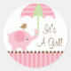 Mignonne C'est un autocollant pour bébé fille avec un éléphant pour bébé doux tenant un parapluie rose et vert avec un petit oiseau marron. Un autocollant parfait pour les faveurs pour bébés ou les enveloppes d'invitation! Des invitations, des timbres-poste et des notes de remerciement sont disponibles dans notre boutique à l'adresse www.celebrateitinvites.com. ©Cocoa Studio