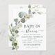 Budget Eucalyptus Verdure Aquarelle botanique Succulente Printemps Genre Neutre Baby Boy ou Baby Girl Baby Shower Invitations sur arrière - plan blanc - comprend belle et élégante typographie script avec feuilles botaniques modernes et verdure pour la célébration spéciale Mère à être.