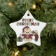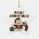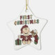 Premier ornement de Noël d'un bébé adorable avec une petite fille en pull rouge et casquette plein et multicolores texte qui dit "Premier Noël" !