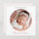 Ce design comprend un faire-part photo bébé naissance bébé fille, un simple accueil parents statistiques modèle, une typographie minimaliste minimaliste minimaliste, une nouvelle carte de grossesse bébé, un script de calligraphie design tendance, avec des rayures roses sucrées mignonnes rayées, photo photo de bébé photo photo, un faire-part bébé unique carré, une carte personnalisée customisée, une annonce de naissance personnalisée