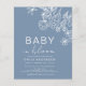 Fêtez l'arrivée d'un nouveau lot de joie avec un beau baby shower thématique Baby in Bloom. Rejoignez-nous pour un après-midi rempli d'amour et de bonheur alors que nous honorons les futurs parents. L'invitation est faite par un arrière - plan bleu poussiéreux, agrémenté d'un éventail de fleurs sauvages dynamiques.