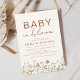 Fêtez l'arrivée d'un nouveau lot de joie avec un beau baby shower thématique Baby in Bloom. Rejoignez-nous pour un après-midi rempli d'amour et de bonheur alors que nous honorons les futurs parents. L'invitation comporte une étonnante terre cuite - texte orange brûlé, accentué par un éventail de fleurs sauvages dynamiques.