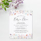 Cette élégante invitation au baby shower, sans distinction de sexe et à prix abordable, présente des aquarelles de fleur sauvage et "Baby in Bloom", rédigées dans un style contemporain et élégant.