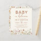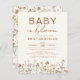 Célébrez l'arrivée d'un nouveau bébé avec une belle fête de naissance sur le thème Bébé en Fleur. Rejoignez-nous pour un après-midi rempli d'amour et de bonheur en l'honneur des futurs parents. L'invitation présente un texte terracotta - orange brûlé saisissant, accentué par un éventail de fleurs sauvages vibrantes.
