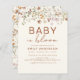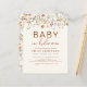 Célébrez l'arrivée d'un nouveau bébé avec une belle fête de naissance sur le thème Bébé en Fleur. Rejoignez-nous pour un après-midi rempli d'amour et de bonheur en l'honneur des futurs parents. L'invitation présente un texte terracotta - orange brûlé saisissant, accentué par un éventail de fleurs sauvages vibrantes.