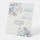 Bébé floral bleu en fleurs signe de piédestal de douche. Facile à modifier le texte. Jolie aquarelle fleurie pour bébé garçon.