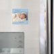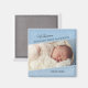 Un élégant aimant photo cadre avec votre propre photo bébé encadrée par un bleu poussiéreux et brillant design. Un cadeau sucré et mémorable pour une famille proche comme les grands-parents. Vous pouvez également ajouter d'autres textes, comme le poids et la longueur de la naissance si vous voulez.