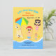 Célébrez le premier anniversaire de votre petit garçon avec cette invitation géométrique et moderne, avec une famille mignonne et un chien près des vagues de la mer. Appelez tous vos amoureux de la plage, amis et enfants pour un après-midi éclatant et bien-passer chez vous à la plage. L'arrière - plan de cette invitation à la fête présente des points colorés qui ressemblent à des confettis festifs et un soleil souriant. Cette carte est parfaite pour l'anniversaire d'une petite fille sur le thème de la plage, ou si l'enfant est né en été. Il est facile de personnaliser cette invitation simple mais mignonne avec vos propres détails.