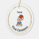 Cette décoration est composée d'un bébé garçon (en bleu). Tapez le nom du garçon dans la boîte de personnaliser. Au verso, tapez l'année en cours ou la date de naissance. J'offre aussi ce style dans une petite fille. Conçu par Sheila Cicchi, Brownielocks.com. Tous droits réservés.