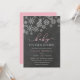 Brrr ! Des invitations chic et givrées pour les baby showers d'hiver présentent une bordure supérieure de flocons blancs contre un arrière - plan de tableau noir, avec "bébé il fait froid dehors" en lettres roses et blanches. Personnalisez avec votre bébé détails de douche en dessous en utilisant les champs modèles. Cartes inversées à solide rose pâle.