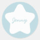 Un autocollant rond personnalisable avec des étoiles blanches mignonnes sur un arrière - plan pastel bleu bébé. Les autocollants sont personnalisables pour que vous puissiez les éditer avec votre propre nom. La couleur arrière - plan est également personnalisable et peut être changée à votre goût.