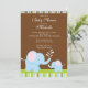 Commencez votre baby shower bébé, baby shower bébé fille ou baby shower neutre directement avec notre invitation de baby shower petit bébé éléphant mignon. Notre Invitation design et moderne dispose d'un adorable petit éléphant bleu bébé avec éléphant de maman sur un arrière - plan brun branché avec une bordure rayée. L'arrière de notre invitation baby shower animaux de la jungle d'éléphants comporte un arrière - plan marron moderne et tendance assorti. Visitez notre boutique pour une large sélection d'invitations baby showers pour les garçons, les filles ou un baby shower neutre. ©Blackleaf Designs