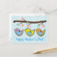 Mignonne oiseau enceinte bleu carte postale de la Fête des Mères. Un joli dessin de trois oiseaux adorables, accrochés à une branche, avec des petits oiseaux bleus à l'intérieur de leur ventre sur un arrière - plan bleu plaid. Grand comme cadeau de la Fête des Mères. Vous pouvez supprimer ou modifier du texte si vous le souhaitez. Cliquez simplement sur "Customisez-le" à droite.