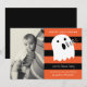 Un fantôme blanc qui dit "BOOO" sur un arrière - plan rayé orange et noir. Ta photo à gauche. Ajoutez votre texte ou vos photos pour une invitation à la fête d'Halloween ou au carte de remerciements de baby shower d'Octobre. Veuillez me contacter pour toute question ou demande spéciale. Merci de vous être arrêté ! Photo publiée avec l'aimable autorisation du photographe Mariage Leeds, John Hope. Visitez-le à http://www.johnhopephotography.com
