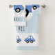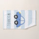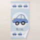 Ce design mignon fait partie d'une collection de mignons doodles de transport pour les vêtements et accessoires de bébé garçon et fille. Le design comprend une voiture bleue dessinée à la main sur des rayures bleu pastel, et peut être personnalisé avec le nom de votre bébé garçon. Parfait pour les petits voyageurs ou les amateurs de voiture ! Consultez notre magasin pour d'autres modèles de serviettes pour enfants.