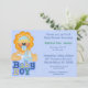 Baby shower moderne de bébé lion avec un adorable petit lion avec une sucette et un voilier. Petits arrière - plans pointillés Ajoutez les détails de votre fête.