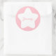 Un autocollant rond personnalisable avec des étoiles blanches mignonnes sur un arrière - plan rose bébé. Les autocollants sont personnalisables pour que vous puissiez les éditer avec votre propre nom. La couleur arrière - plan est également personnalisable et peut être changée à votre goût.