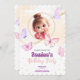 Rendez votre journée spéciale encore plus magique avec cette adorable invitation pour la fête d’anniversaire de la petite fille ! Doté d'une douce petite fille caricaturale en tenue rose entourée de papillons délicats roses et violets, ce design dégage chaleur, joie et charme. Les bords pétoncles et les tons pastel doux créent une sensation rêveuse et fantaisiste, idéale pour le premier anniversaire du bébé ou toute petite fête de princesse. Personnalisez avec vos propres détails de fête pour un invitation digne de ce nom qui ravira vos invités.