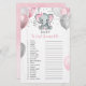 Cette carte de jeu de bébé traits douche avec des éléphants de fille rose et gris avec des ballons et des confettis. Vous pouvez personnaliser le jeu en cliquant sur le bouton "personnaliser". CLÉ DE RÉPONSE : 1. Dehors, 2. Berceau, 3. Rattle, 4. Bouteille, 5. Pacifique, 6. Grossesse, 7. Formule, 8. Teddy Bear, 9 ans. Haut-président, 10 ans. Poussette, 11. Baby Monitor, 12 ans. Rattle, 13 ans. Poudre bébé, 14 ans. Mobile, 15. Pompe mammaire, 16 ans. Couverture, 17. Siège auto, 18 ans. Pleure, 19 ans. Nursery, 20 ans. Crème de couches