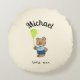 Coussin rond avec mignon bébé ours sur arrière - plan beige