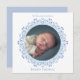 Voici notre carte de Carré photo pour bébé bleu mignon! Présentant un design minimaliste élégant et un style classique moderne, cette carte unique présente la photo de votre nouveau-né dans un modèle circulaire d'inspiration vintage. L'élégant script de typographie met en évidence les statistiques essentielles de naissance dans un agencement propre et simple, parfait pour les parents à la recherche d'une façon intemporelle mais créative de présenter leur petit. Que vous préfériez un style traditionnel ou moderne, cette carte carré se marie sans effort pour un faire-part de naissance étonnant et mémorable.