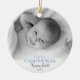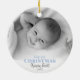 Premier ornement photo en céramique de Noël pour bébé — Personnalisez cette décoration de vacances simple et ronde avec une photo de tout nouveau-né précieux. Le modèle permet également de personnaliser le nom et l'année de naissance. Les deux côtés de l'ornement sont identiques. Chaque modification change l'arrière et l'avant, ensemble.