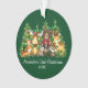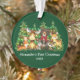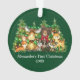 Première aquarelle de Noël de bébé Animaux de forêt Animaux de forêt Ornement. Bébé Les animaux comprennent Ours avec un Bow rouge, Cerf, Moose, Raccoon, Lapin lapin, Renard et Chouette avec la végétation forestière et les lampes à cordes de vacances. Ajouter un nom.