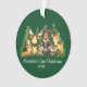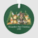 Première aquarelle de Noël de bébé Animaux de forêt Animaux de forêt Ornement. Bébé Les animaux comprennent l'ours, le cerf, l'orignal, le raton laveur, le lapin lapin, le renard et la chouette avec la végétation forestière. Ajouter un nom. Arrière - plan vert forestier.