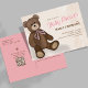 Fêtez votre petite avec cette invitation baby shower conçue pour une petite fille ! Doté d'une jolie illustration d'ours en peluche dans des tons roses doux, cette carte postale économique combine un script de calligraphie charmant avec une typographie élégante. Le design d'inspiration vintage embrasse un style simple et minimal, parfait pour les parents qui aiment les détails intemporels et doux. Une belle et abordable façon pour les invitations invités à votre fête spéciale.