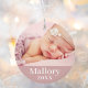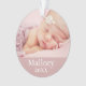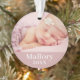 Un ornement photo simple et élégant pour le premier Noël du bébé peut être personnalisé avec une photo de nouveau-né et texte personnalisé pour le prénom. Choisissez d'inclure la même photo sur les deux côtés ou deux photos différentes. La couleur arrière - plan rose rose poussiéreuse peut être changée pour correspondre à vos photos !