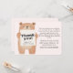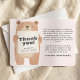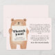 Merci à vos proches de la façon la plus gentille avec cette carte de faire-part bébé avec un ours de charme tenant un signe qui affiche le "Merci" avec votre nom, poids et taille de bébé filles. Le dos de la carte comprend un message de remerciement sincère, parfait pour partager votre gratitude pour les cadeaux et le soutien. Un design sucré avec un thème bleu clair, idéal pour célébrer votre petit bébé !