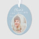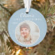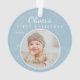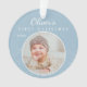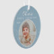 Le premier ornement photo de bébé bleu de Noël. Un mignon arrière - plan bleu vif avec une photo personnalisée d'un bébé garçon dans un cadre circulaire. Ajoutez votre photo et customisez le nom et le texte et faites un doux saké de famille.