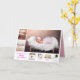 Carte de faire-part de naissance moderne pour fille avec chambre à l'intérieur pour plus de détails. Ajoutez trois jolies photos de votre nouveau-né petite fille et ses détails de naissance comme indiqué par l'exposition des icônes.