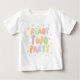 Un t-shirt conçu pour un anniversaire de 2 ans, avec la phrase "ready two party" en lettres de ballons pastel mignonnes.