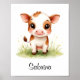 Illuminez la chambre de votre enfant avec cette charmante affiche personnalisée mettant en vedette un adorable veau aux grands yeux bruns et aux joues roses. Debout dans un champ de verdure et de fleurs sauvages, ce jeune animal amical ajoute une touche douce et ludique à une chambre sur le thème de la ferme ou de style campagnard. Rendez-la encore plus spéciale en la personnalisant avec le nom de votre enfant en bas - un cadeau de baby shower sincère ou pour décorer un espace de chambre douillet.