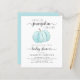 Une invitation virtuelle pour la douche pour bébé, mignonne, gaie et économique, avec "Un petit Citrouille sucré est en route" écrite dans un mélange de typographie moderne gris doux et un script élégant, et une aquarelle bleu pastel d'un citrouille. Personnalisez le nom de la mère et les détails de la douche dans une simple typographie grise.