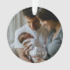 Minimaliste et beau, ce ornement personnalisé de 2 photos célèbre le premier Noël du bébé. Il dispose d'une police de caractères moderne et d'un sapin de Noël blanc. Le texte est entièrement personnalisable.