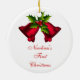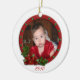 Ornement de Noël Babys First avec fleurs traditionnelles et design de couronne rouge. Le texte est entièrement personnalisable. Ajoutez vos informations ou changez-les complètement. Le modèle peut être utilisé pour n'importe quelle photo de Noël. Il vous suffit de modifier le texte en fonction de vos besoins.
