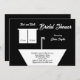 Cette invitation à la douche nuptiale avec lit et bain comprend une serviette blanche avec les noms de la mariée et du marié ainsi qu'une luxueuse baignoire blanche sur un arrière - plan noir. Les mots "Bed and Bath" apparaissent au-dessus des serviettes et les mots "Fête des mariées" apparaissent à droite des serviettes. Tous les détails de votre douche apparaissent à l'intérieur de la baignoire. C'est une invitation très unique à un lit et bain nuptiale douche. Copyright henishouseo
