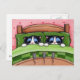 Carte postale de Whimsical cat art. 2 chats noirs et blancs regardant 3 souris grises derrière les draps. Créé à partir d'un tableau original 2008 Lisa Marie Robinson