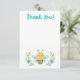Merci à vos invités baby showers avec cette maman d'être carte de remerciements. Il présente une adorable illustration d'abeilles bleues et jaunes avec une bordure florale, et un motif hexagone à l'arrière. Idéal pour une douche pour bébé garçon. Conçu pour vous par Blackberry Boulevard.